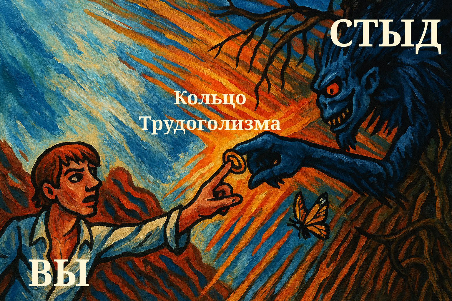 Что же написано на Кольце Трудоголизма? Как выглядит эта запутанная психологическая конструкция, которая объединяет стремление к достижениям, неутолимую жажду любви, стыд и перфекционизм? Вот эта надпись: